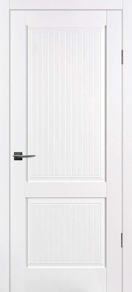Полотно комплектуется объемной филенкой с фрезерованным рисунком "под рейку". В остекленных полотнах используется рифленное стекло с красивым прокатным узором в виде полос. Отлично смотрится в неоклассических и лофтовых интерьерах.