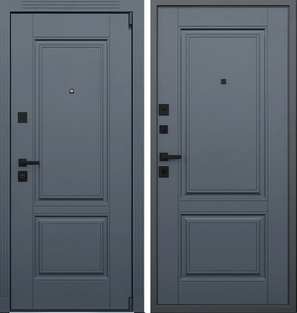 Порошковое покрытие "муар серый". Панель МДФ 16 мм. Объемная фрезеровка. Цвет "графит". Наличник МДФ: толщина 16 мм, ширина 85 мм.