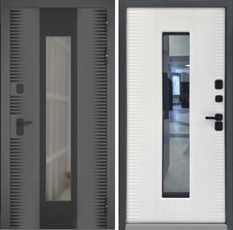 Выполнена из холоднокатанной стали марки СТ08ПС, на которую наносят цинковый грунт. между наружной и внутренней сторонами двери обеспечивается термовставкой имеющей низкий коэффициент теплопроводности, расположенным по всему периметру полотна и короба. Наличие термовставки в дверной коробке и дверно