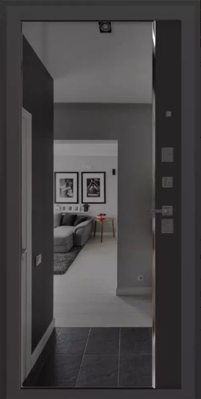 Фурнитура в черном цвете: накладка со шторкой, глазок , дверная ручка, ночная задвижка. Цилиндр ключ-вертушка (производитель не регламентируется), регулируемый эксцентрик.