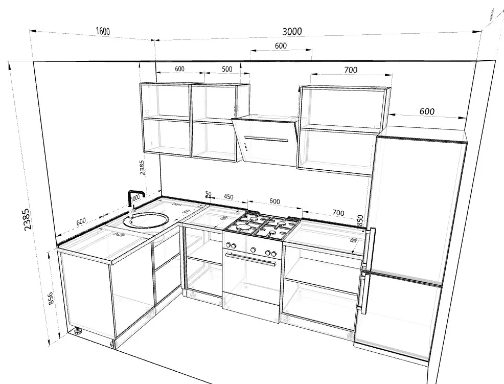 Ручки, столешница, стеновая панель, мойка, смеситель и бытовая техника продаются отдельно.